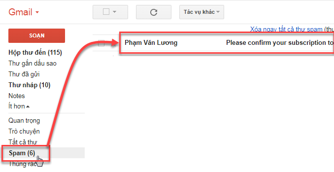 - Nếu bạn không thấy thư, xin vui lòng vào hòm thư spam để thấy thư này như hình dưới